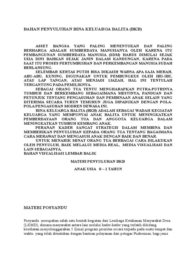 Contoh Materi Penyuluhan Bkb / Bahan Penyuluhan Bina Keluarga Balita Pdf - 2) waktu pelaksanaan kegiatan hendaknya tidak dikurangi;