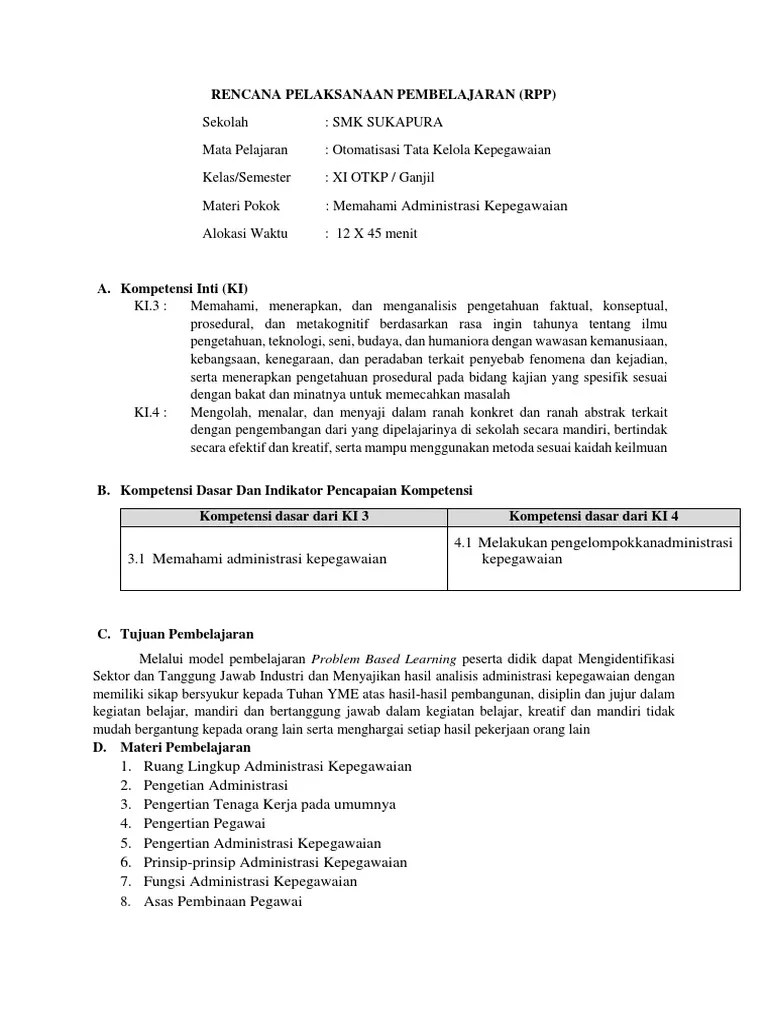 Rpp Otomatisasi Tata Kelola Kepegawaian - Silabus Otomatisasi Dan Tata Kelola Keuangan Pdf : View otkp 05 kepegawaian 11.docx from rpp 1 at sma negeri 1 purwodadi.