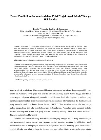 Membongkar mitos dan ideologi tentang pendidikan di indonesia melalui puisi karya rendra berjudul.